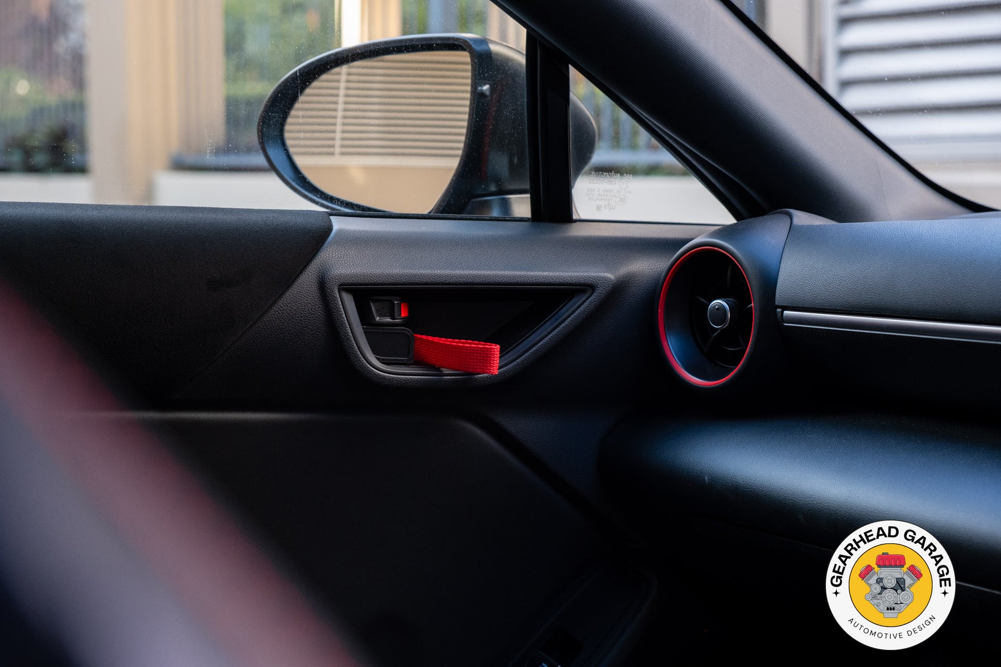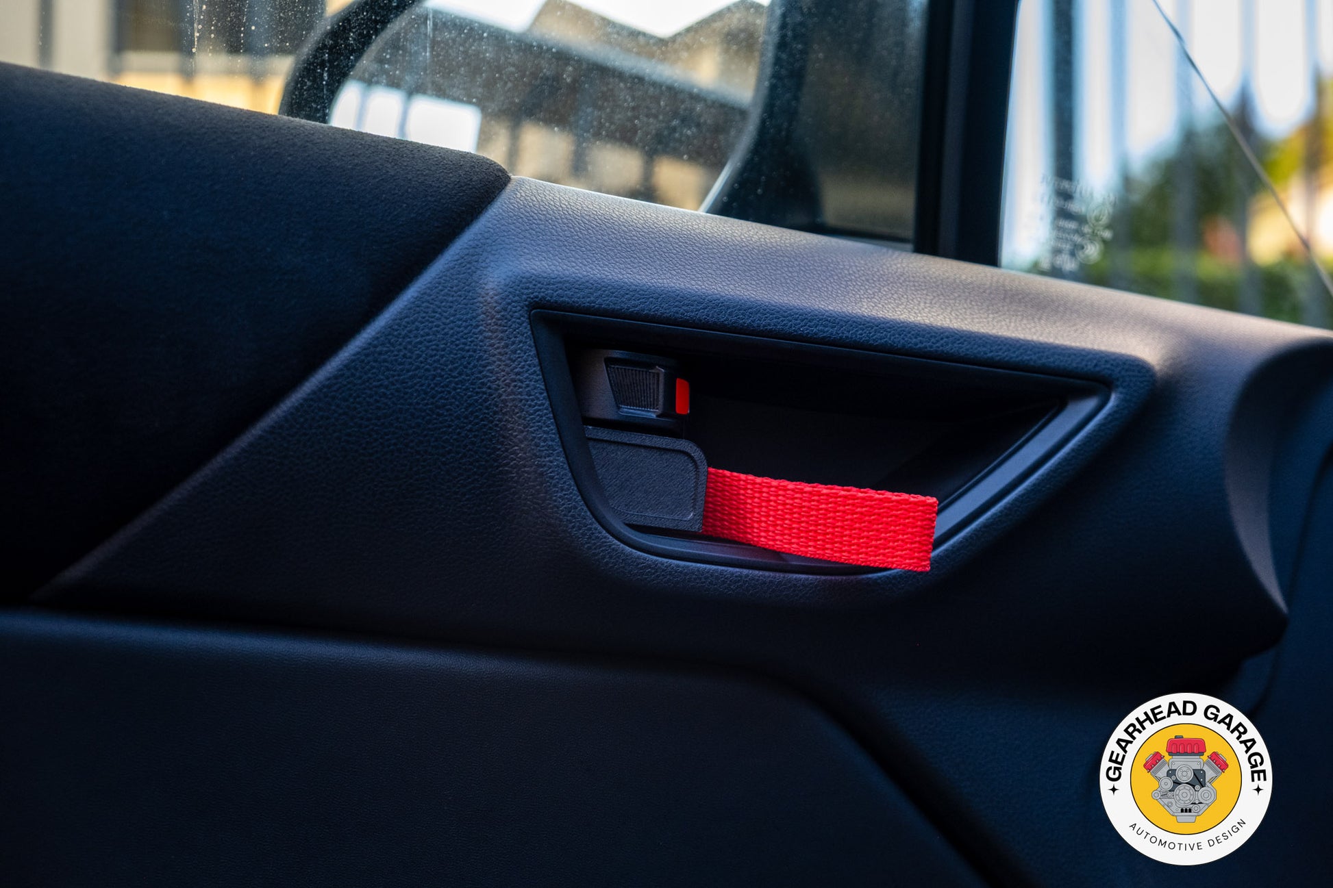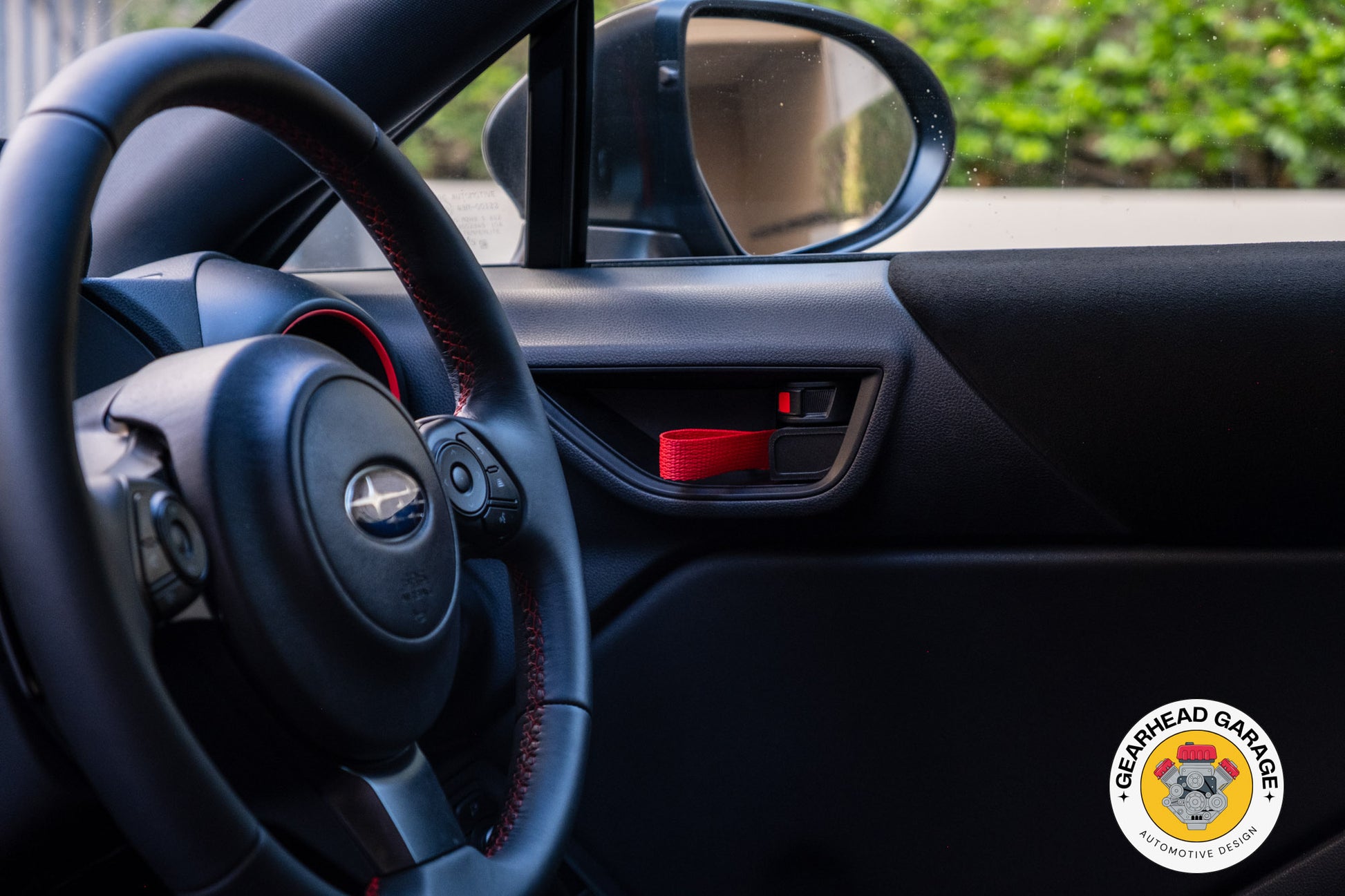 Upgrade your BRZ or GR86 interior with a true motorsport-inspired touch. The Gearhead Garage Motorsport Door Release Kit replaces your factory door handles with lightweight nylon pull straps — giving your cabin that clean, track-ready look and feel.